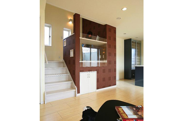 中庭と階段の踊り場を広げて家事兼書斎としました