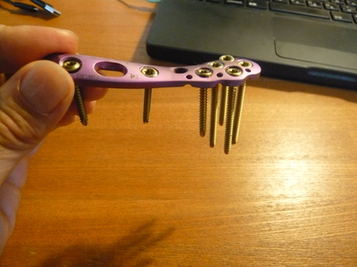 ↑の写真は実際に手術して外したプレートやらボルトです・・・・ 手術前までは抜けばいいじゃん と相変わらずお気楽だったのですが