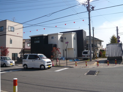気持ちでぐるぐる回っていただきますと、見学会のタテ看板がみえてくるハズです。
