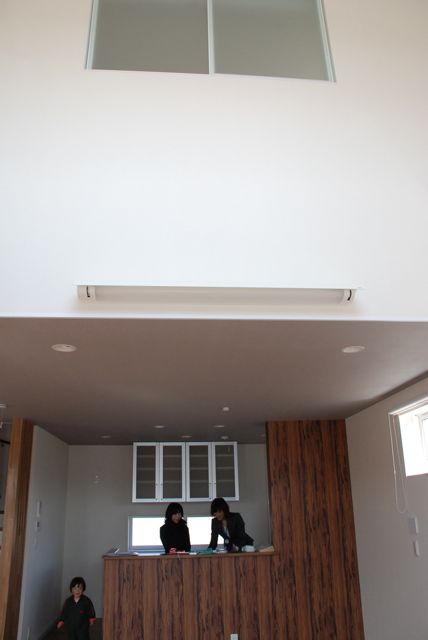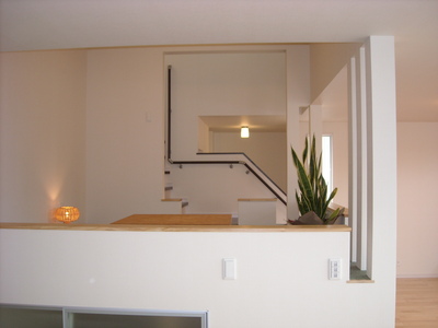 スキップフロアの家 長野市H邸2008年08月10日22:07毎日うだるような暑さが続いております この暑さの中ですがここのところ何件かお引き渡しを 北側が取り付け道路なので北玄関です 玄関に入ると目隠し壁が 吹き抜けのあるリビング リビング方向からキッチンを望む