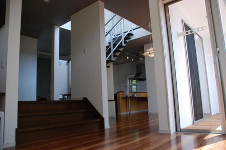内部:中庭・スキップフロアを利用した収納庫、 アイランドキッチン・目線が気にならないバルコニー、 勿論シューズクローク等もあります。